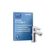 Duravit B.1 Waschtischarmatur, Größe S (Auslauf Höhe 96 mm), Wasserhahn Bad mit Zugstangen-Ablaufgarnitur, Waschbecken Armatur mit Keramikkartusche, Chrom