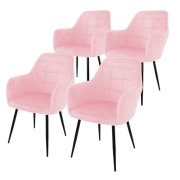 ECD Germany 4er Set Esszimmerstühle mit Rücken- und Armlehnen, Rosa, Küchenstühle mit Samtbezug, Polsterstühle mit Metallbeinen, Ergonomische Stühle für Esstisch, Wohnzimmerstühle Esszimmerstuhl