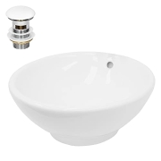 ECD Germany Waschbecken Waschtisch Ø 420x170 mm Rund Keramik Weiß inkl. Ablaufgarnitur für Waschbecken mit Überlauf Aufsatzbecken Aufsatzwaschbecken Aufsatzwaschtisch Waschschale Spülbecken Becken