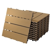 ECD Germany WPC Terrassenfliesen 30x30 cm/33 Stück=3m², Teak, geriffelt, Holzoptik, Bodenbelag mit Klicksystem und Drainage, Terrassendielen Balkonfliesen, Klickfliesen für Terrasse, Garten und Balkon