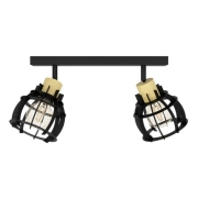 EGLO Deckenstrahler Stillington 1, 2-flammige Deckenlampe mit schwenkbaren Spots, FSC100HB, Deckenleuchte Industrial Design aus Metall in Schwarz und Holz in Natur, Deckenspot mit E27 Fassung