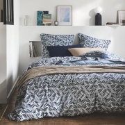 Bewundern Sie die Schönheit dieses Dekors, das Sie in eine hypnotische und beruhigende Atmosphäre eintaucht. Unser Modell Reflets aus Baumwoll-Perkal erinnert an die Ränder eines leicht gealterten…