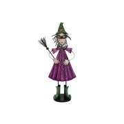 EUROPALMS Halloween Metall-Figur Kleine Hexe, Höhe 102cm | In Handarbeit hergestellte Hexen-Figur aus Metall, mit Besen, farbig lackiert