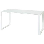 Montierte Maße ca. 160 x 75 x 80 cm (BxHxT) Schreibtisch mit zwei pulverbeschichteten Metallkufen, Tischplatte mit Glasauflage; im Dekor Weiß; Einscheibensicherheitsglas, Weißglas Oberboden aus…