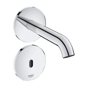GROHE Essence, elektronische Waschtischarmatur, wassersparend (Wasserhahn für das Bad mit Infrarot-Sensor, Badarmatur Wandmontage, 18cm lang, 7 Programme, mit Trafo 100-230 V AC), chrom, 36447000