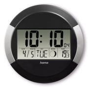 Hama Wanduhr Digital mit Funk (Funkuhr ohne tickgeräusche, Digitaluhr mit LCD-Display, Thermometer, Kalender, Mondphase, inkl. Batterie zum aufhängen oder hinstellen) schwarz- Silber