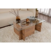 Hanah Home Stylish Coffee Table, 37 cm x 50 cm, Tempered Glass & Walnut Melamine, 18 mm Thickness | Elegant Design, PVC Edge Bands, Disassembled for Easy Assembly