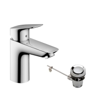 hansgrohe Waschtischarmatur Logis, Wasserhahn Bad mit Auslauf Höhe 100 mm, mit Zugstange, Badarmatur wassersparend, Chrom