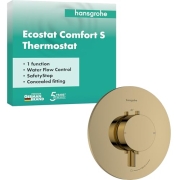 hansgrohe Ecostat Comfort S - Duschthermostat Unterputz, Duscharmatur mit Sicherheitssperre (SafetyStop) bei 40° C, Thermostat für die Dusche, für 1 Verbraucher, Polished Gold Optic, 33714990