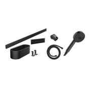 hansgrohe WallStoris - Badezimmer Set, Zubehör Set für das Bad ohne bohren, 7-teilig, mit Duschkopf wassersparend und Bad-Accessoires, Badezimmer Zubehör, Mattschwarz, 24291670