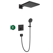 hansgrohe Duschset Raindance E Unterputz (7 in 1), Duschsystem mit Kopfbrause, Duschthermostat, Duschkopf, Duschschlauch inkl. Grundkörper und Halterungen, Mattschwarz