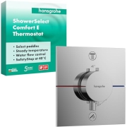 hansgrohe ShowerSelect Comfort E - Thermostat Unterputz, Armatur mit Sicherheitssperre (SafetyStop) bei 40° C, eckiges Thermostat, Mischbatterie für 2 Verbraucher, Chrom