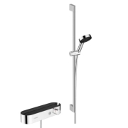hansgrohe Pulsify Select S - Duschset mit Thermostat, Duschkopf, Brausestange 90cm, Schlauch und Halterung, Handbrause mit 1 Strahlart, Chrom
