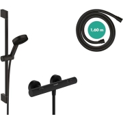 hansgrohe Pulsify Select S - wassersparendes Duschset mit Thermostat Ecostat Fine, Duschthermostat mit Duschkopf 8,2 l/min (EcoSmart), Duschstange 65cm, Schlauch und Halterung, Mattschwarz, 24262670