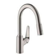 hansgrohe Küchenarmatur Talis M54 (Wasserhahn Küche mit Schlauchbox, 360° schwenkbar, ausziehbare Brause mit 2 Strahlarten, hoher Komfort-Auslauf 210mm, Standardanschlüsse) Edelstahl Finish
