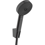 hansgrohe Pulsify Select S - Duschset mit Duschkopf wassersparend (EcoSmart, 3 Strahlarten inkl. PowderRain), Duschschlauch (1,25 m) und Duschkopfhalterung, Mattschwarz, 24306670