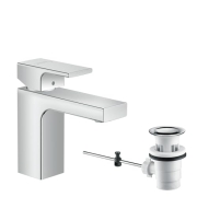 hansgrohe Vernis Shape - Waschtischarmatur mit Zugstangen-Ablauf, Wasserhahn Bad mit Auslauf Höhe 95 mm, Mischbatterie Waschbecken wassersparend (EcoSmart), Chrom, 71561000