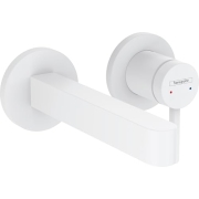 hansgrohe Waschtischarmatur Unterputz für Wandmontage Finoris, Wasserhahn Bad mit Ablaufgarnitur unverschließbar, Badarmatur wassersparend, Mattweiß, Auslauflänge 168mm