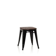 hjh OFFICE 645041 Metall Hocker VANTAGGIO W Schwarz/Holz Sitzhocker im Industry-Design mit Holz-Sitzfläche, stapelbar, niedrig