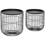 HOMCOM Couchtisch rund 2er Set, Beistelltisch mit Stauraum, abnehmbare Tischplatte, Stahlkonstruktion, im Skandidesign, Wohnzimmertisch Kaffeetisch Sofatisch für Wohnzimmer Schlafzimmer, Schwarz