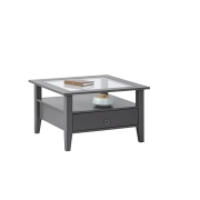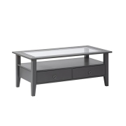 Inter Link - Couchtisch - Massivholztisch - Wohnzimmertisch - Sofatisch - Kiefer Massivholz - mit Glasplatte - Grau lackiert - Provence 1
