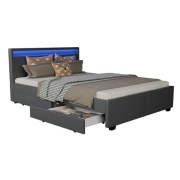Juskys Polsterbett Lyon 180x200 cm mit Bettkasten, LED Beleuchtung, Lattenrost & Kunstleder, grau, Bett Bettgestell Doppelbett Ehebett