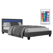 Juskys Polsterbett Verona 120x200 cm mit LED-Beleuchtung, Lattenrost & Kopfteil, Bett mit Gestell aus Holz & Kunstleder Bezug, grau