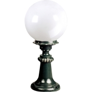 De bol in deze prachtige decoratieve klassiek vormgegeven tuinlamp geeft een diffuse lichtval. De witte opaal ronde bol laat het licht gedoseerd door met als resultaat een mooi gefilterd…