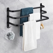 Handtuchhalter Schwarz Ohne Bohren Handtuchstange,Aluminium Selbstklebend Badetuchhalter, Wand 3-Stöckig Handtuchstange mit Haken,Wasserdicht Rust Badetuch Handtuchhalter für Badezimmer/Küche