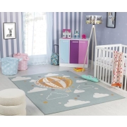 Livabliss Heissluftballon Kinderteppich - Cartoon Teppich 120x170 cm, Teppich Kinderzimmer oder Babyzimmer, Krabbelteppich oder Spielteppich - Baby Teppich für Jungen & Mädchen, Grau