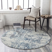 Livabliss Moroni Wohnzimmer Teppich modern – Abstrakt Design in Marmor Optik für Wohnzimmer 160 cm Rund, Esszimmer, Schlafzimmer - Marmor Teppich groß, weicher Teppich Kurzflor in Silber, Blau, Grau