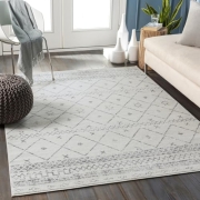 Surya Agadir Vintage Teppich groß - Orientalischer Teppich Wohnzimmer 200x275 cm, Esszimmer, Schlafzimmer - Boho Teppich, Kurzflor Teppich für einfache Pflege - Muster Teppich in Beige und Elfenbein