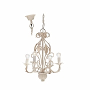 LOBERON Leuchter Assenay, dekorative Holzelemente, Kronleuchter im klassischen Design, Hängeleuchte mit Antik-Charme, Eisen, Mangoholz, creme