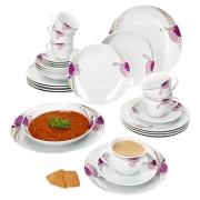 MamboCat 30-teiliges Kombiservice Viola | Je 6x Kaffeetasse 170 ml, Untertasse, Kuchenteller, Suppenteller 450ml…