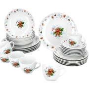 MamboCat Viola 30tlg Kombiservice I Porzellan-Geschirrset mit Blumen-Dekor für 6 Personen I Je 6X Tassen 170ml, Untertassen, Kuchenteller, Suppenteller & Speiseteller