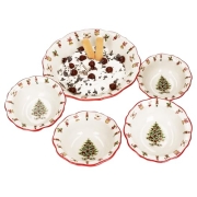 MamboCat Maestro Natale 5tlg Schüssel-Set I italienisches Keramik-Geschirr für 4 Personen mit Weihnachtsdekor I 1x große Schüssel & 4x Dessertschalen für Weihnachten