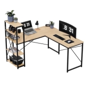 MARK ADLER Leader 5.9 Oak | Eckschreibtisch mit Regalen | Computertisch mit Metallgestell | Höhenverstellbare Füße | Pulverbeschichteter Stahl | Holzoptik | Industrial Loft Design