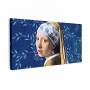 MuchoWow Leinwand Bilder, Einzigartige Wanddeko mit Rahmen, Mädchen mit Perlenohrring - Delfter Blau - Vermeer - Blumen - Gemälde - Alte Meister, Wandbilder Wohnzimmer, Deko Schlafzimmer 80x40 cm