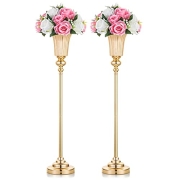 NUPTIO Mittelstück Vase Gold Hochzeit 2 Stück 54,6 cm hohe Metall Trompetenvasen für Tischdekorationen Gold Blumenständer für Party