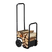 Relaxdays Kaminholzwagen, Brennholzkarre aus Stahl, mit 2 Rädern, Feuerholztransport & -aufbewahrung, bis 60 kg, schwarz