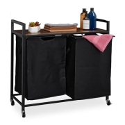 Relaxdays Wäschekorbregal, 2 ausziehbare Fächer, rollbare Wäscheablage, Wäschesammler, Industrial Design, schwarz/braun