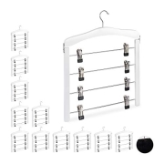 Relaxdays 12 x Rockbügel mehrfach, platzsparend, 360° drehbarer Haken, Clipbügel für Hosen & Röcke, Hosenbügel, Holz, weiß