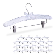 Relaxdays 20 x Satin Kleiderbügel, gepolstert, Vintage, verstellbare Clips, drehbarer Haken, Klammerbügel, 38 cm breit, weiß