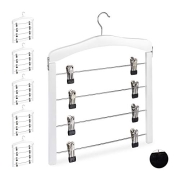 Relaxdays 6 x Rockbügel mehrfach, platzsparend, 360° drehbarer Haken, Clipbügel für Hosen & Röcke, Hosenbügel, Holz, weiß