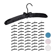Relaxdays 50 x Kleiderbügel Satin, weich gepolstert, 360° drehbarer Haken, dekorative Schleife, Satinbügel, 38 cm breit, schwarz