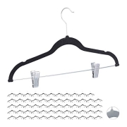 Relaxdays 60 x Samtbügel mit Clips, 360° drehbarer Haken, Hosenbügel, rutschfeste Hemdenbügel, 43 cm breit, Clipbügel, schwarz