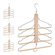 Relaxdays 4 x Mehrfachkleiderbügel, Halter mit 4 beweglichen Bügeln, Schrank-Organizer, mit Metallhaken, Lotusholz, Natur