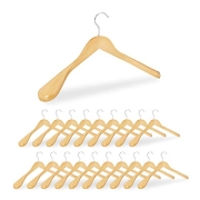 Relaxdays 20 x Anzug Kleiderbügel im Set, breite Schulter, 360° drehbarer Haken, Kostüm, Jacken, Holzkleiderbügel, Natur