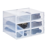 Relaxdays Schuhboxen 6er Set, für Stiefel, Stiefelbox, stapelbar, bis Gr. 44,5, Lüftungsschlitze, faltbar, transparent
