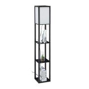 Relaxdays Stehlampe mit Regal, HBT: 161 x 26 x 26 cm, E27-Fassung, Holz & Acryl, modernes Design, Stehleuchte, schwarz